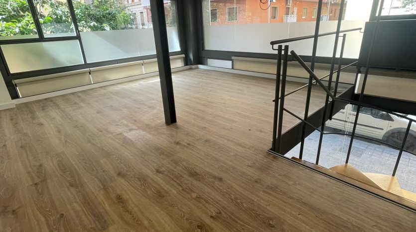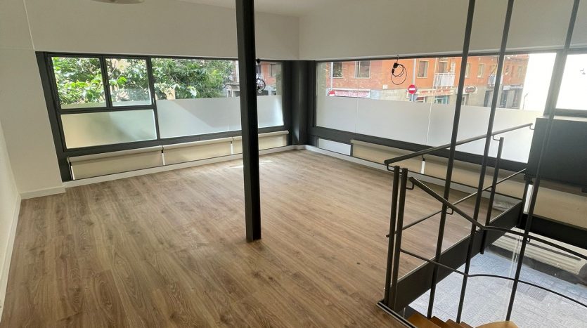 Se alquila un local comercial, que se encuentra en la calle caballero, esquina con la CL COMTES DE BELL-LLOC, 08014, Barcelona. Construido en el año 2007. Es un local tipo dúplex que tiene 77 m2 construido y 63 m2 útiles. Esta repartido de la siguiente forma, la primera planta tiene un salón amplio que tiene 43 m2 y la segunda planta tiene salón pequeño, una habitación pequeña y un baño completo con plato de ducha. El local está totalmente exterior y bien iluminado.